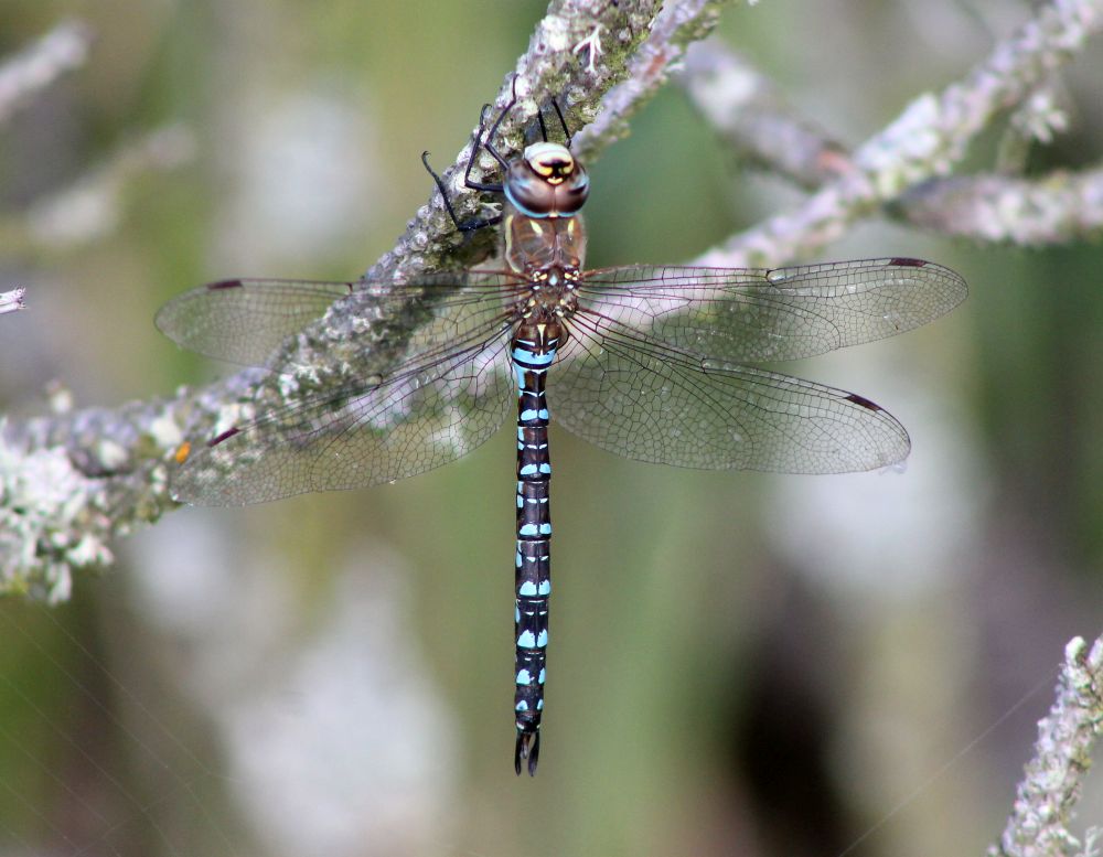 Ved Strandfogedvejen mellem Tornby Klitplantage og Hønsebakkerne var der læ for østenvinden i dag, og her jagede flere arter guldsmede efter mindre insekter. Èn af dem var denne efterårs-mosaikguldsmed, som hører til de større arter. Den er nogenlunde let at kende, især hvis man får taget et billede og har en god bestemmelsesbog. Den flyver især i august og september.